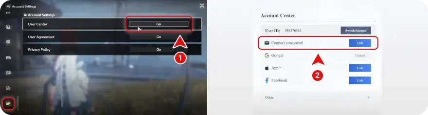 Bind akun kamu ke Kuro Games sebelum transaksi, lihat gambar dibawah untuk panduan